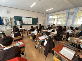 ?4時間目、4年生の音楽の授業です。