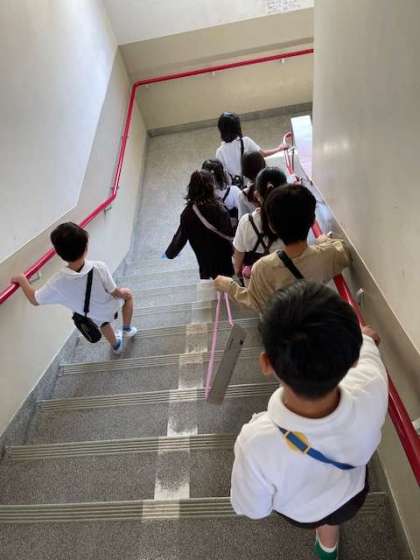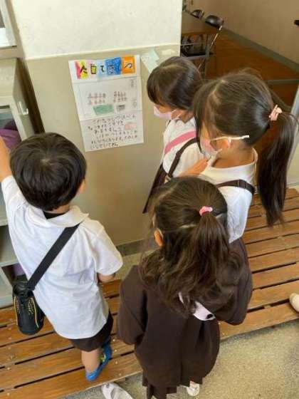 二年生と一年生で、学校たんけんをしました。はじめて周る教室にドキドキワクワクしている一年生を二年生が優しく案内しました。