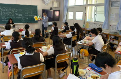 今日の給食の時間に津曲先生による読み聞かせがありました。