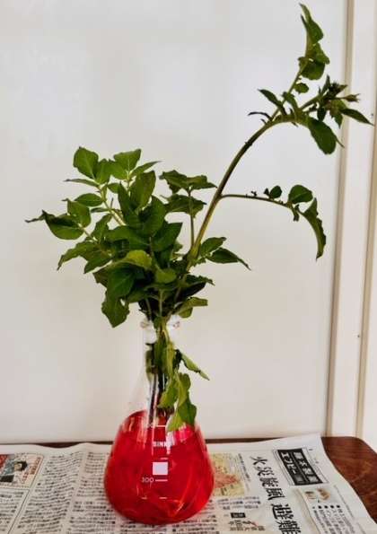 今日は植物の体を、水がどのように通っていくのかの学習です。