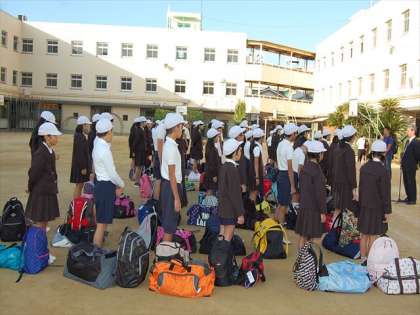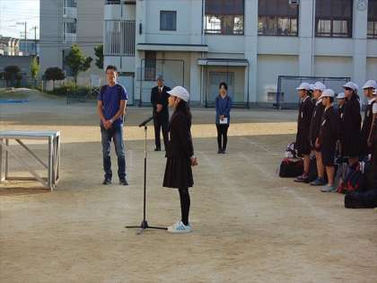 本日6年生は、伊勢志摩方面への修学旅行に出発しました。透き通るようなすがすがしい朝日が差し込む中、出発式が行われました。