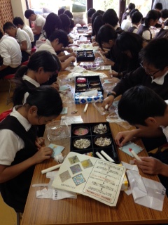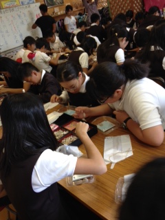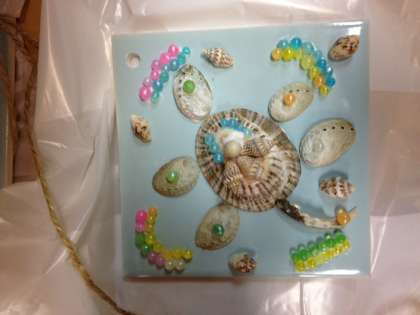シーカヤックが中止となったため、子どもたちは「シェルクラフト」制作に取り組みました。