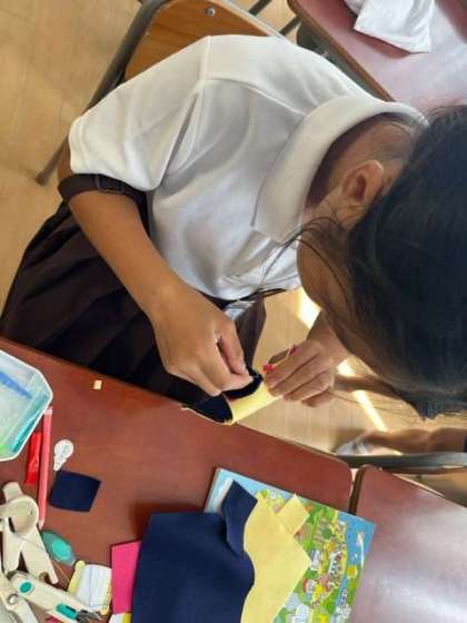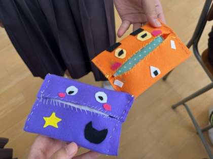 家庭科では、フェルトを使って小物を作っています。