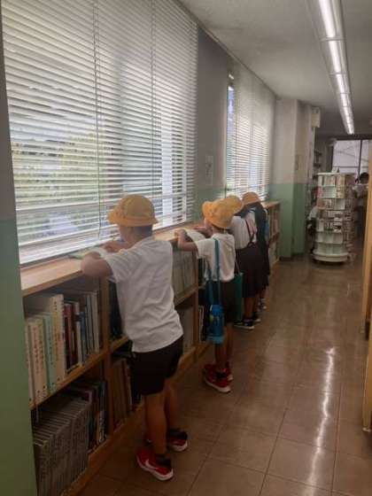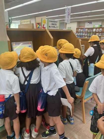 質問と読み聞かせが終わった後は、館内を自由に見学しました。館内にあるマークや、訪れる方が利用しやすくなるような工夫を見つけたら、その都度メモを取りました。