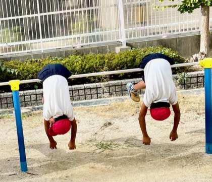 子ども達は、鉄棒遊びの行い方を知り、いろいろな鉄棒遊びを練習しています。