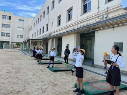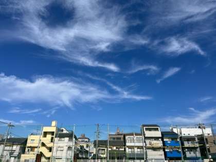 パソコンで写真を撮って、雲の様子を記録し、その時の天気や雲の量をノートにまとめました!