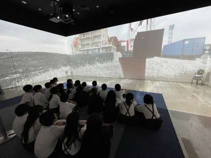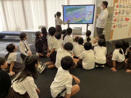 津波高潮ステーションへ社会見学に行きました。地震と津波の臨場感ある映像を見たり、ハザードマップを確認したり、大阪の台風の歴史について学習したりしました。見学を通して、地震や津波の怖さを知るとともに、命を守る方法について改めて考える機会になりました。