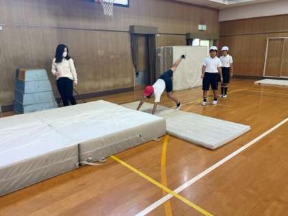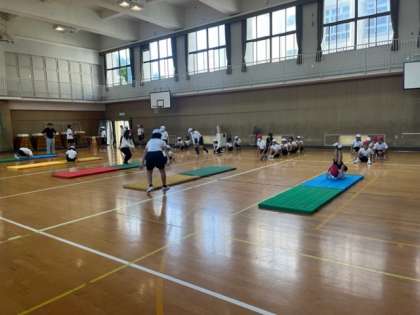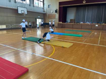 開脚前転や開脚後転、壁倒立など、技術の上達のためにみんなが前向きに取り組んでいました!