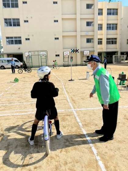 交通安全教室で、安全な自転車の乗り方について学習しました。