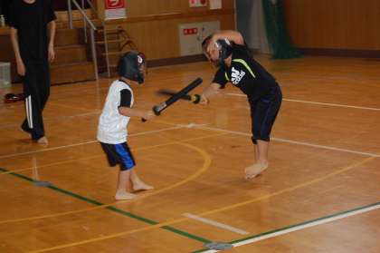 いよいよ防具をつけて実践練習。最後は試合まで行いました。