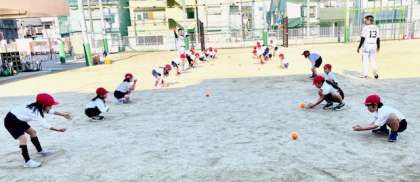 ゴロは、小指と小指を合わせ、扉のように構えて受けます。