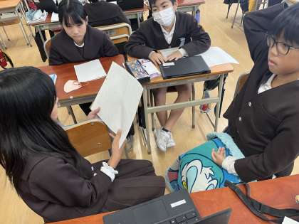 「伝えたい、心に残る言葉」のスピーチを班で発表しました。