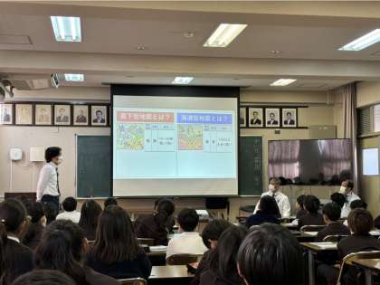 此花区役所のまちづくり推進課の方に来ていただき、自分たちの住んでいる地域の避難場所や、海抜の高さについて学びました。ご家庭でご協力いただいた防災マップを使って、自分自身の避難場所を確認し、もしもの時に避難できるように考えました。