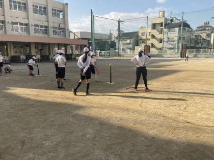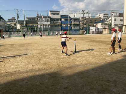 打つことが、苦手な子どももチームで教え合いながら取り組んでいます。