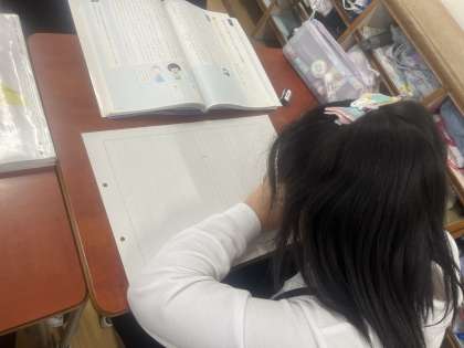 クラスをよりよくするために、反対の立場を考えながら自分の意見を書いています。