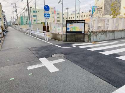 春日出小学校北東角と北西角の交差点については、多くの児童が登下校時に利用します。この交差点を車両が通行する際、より一層注意を払って通行してもらえるように、大阪市建設局によりカラー舗装工事が行われる予定となりました。
