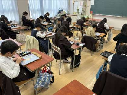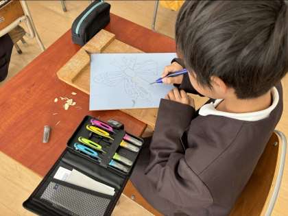 図工科「ほってすって見つけて」の学習では、彫刻刀を使って板を彫っています。木版画に初めて挑戦する4年生ですが、彫刻刀の使い方にも慣れてきました。集中して丁寧に彫ることができています。
