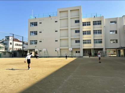 体育の時間にグローブを使ってキャッチボールをしています。大谷翔平選手から贈っていただいたグローブも使って、子どもたちも嬉しそうです。休み時間にもグローブを使って友だちとキャッチボールする姿が見られ、どんどん上達しています。