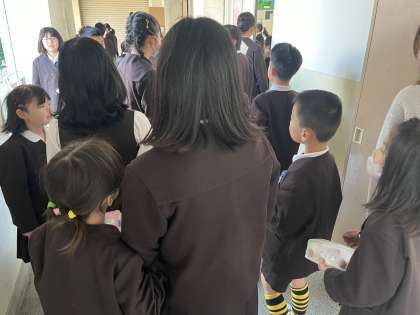 1年生の送り迎え、メッセージカードを書くサポート、欠席者の確認などたくさんやることがある中、班の友だちと協力して、1〜4年生をまとめることができました!