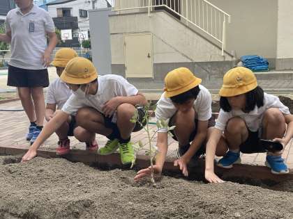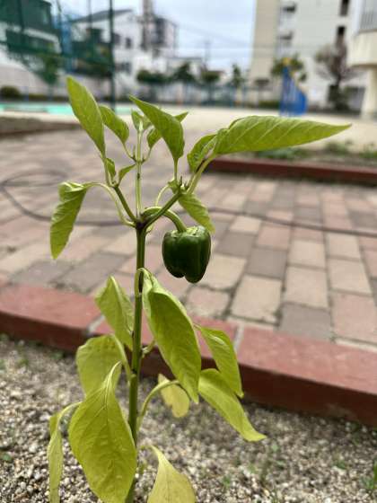 「ピーマンが小さくてかわいい。」「もう食べられそう。」といった感想が聞こえてきました。