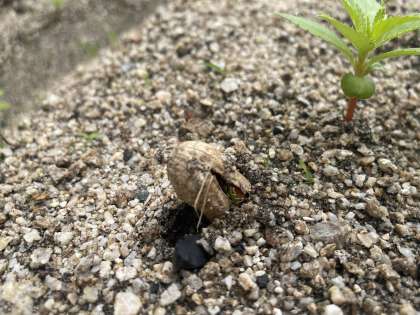 栽培委員会で5月に植えた、ピーマンと落花生が少しだけ育っていました。