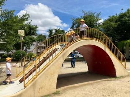 此花公園では、ルールやマナーを守って楽しく遊ぶことも学習しました。此花公園は、校区外なので、小学生の子どもだけで来てはいけない事も確認しました。