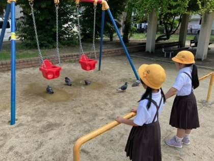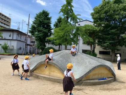 保育園の幼児さんたちも遊びに来ていたので、幼児さんにぶつからないよう、気を付けて遊ぶ事、同じ遊具を独り占めしない事など、約束して遊びました。
