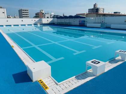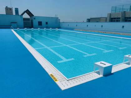 春日出小学校のプールは、昨年末に全面改修工事を行い、綺麗に整備されています。