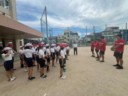 レッドハリケーンズ大阪の方々が、春日出小学校に来てくださいました。