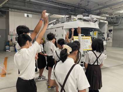 班に分かれて、スタジオと中継車を見学しました。