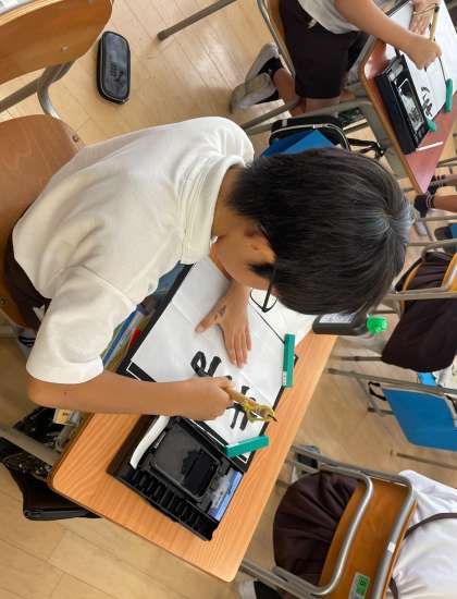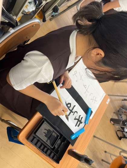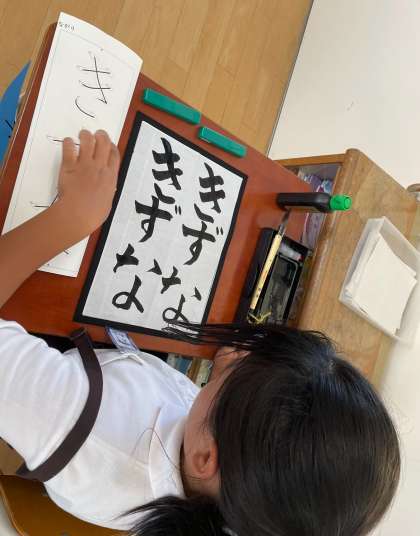 点画のつながりを意識して、毛筆で「きずな」と書きました。集中して書くことがでしました。