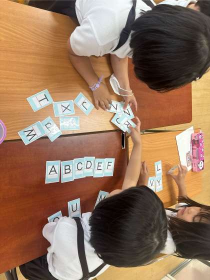 アルファベット順にどの班が早く並べれるかの勝負もしました!また今度の英語タイムにしようね!