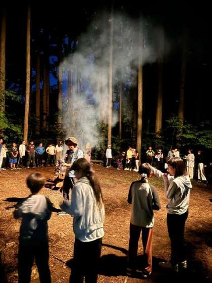 少し小雨がふってきましたが、キャンプファイヤー盛り上がってます。