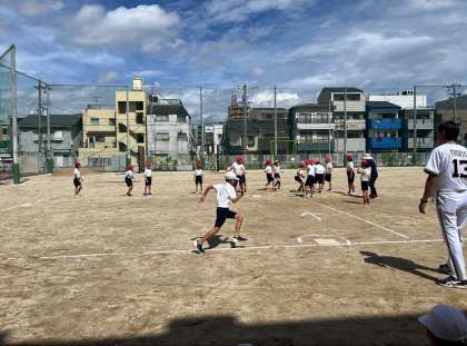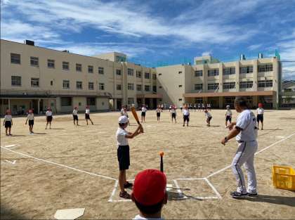 オリックス・バファローズで活躍された元プロ野球選手が学校に来てくださり、ティーボールという、野球に似たスポーツを教えてくださいました。