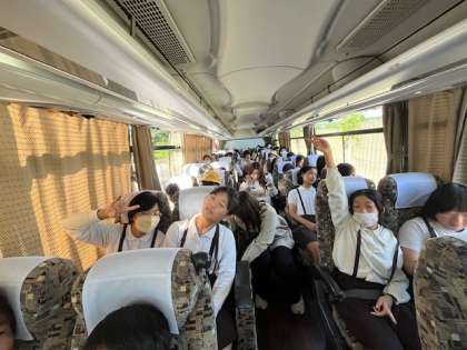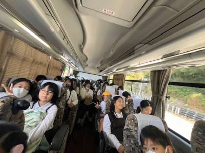 バスの中では、バスレクリエーション係さんが考えてくれたゲームをしたり、音楽を聴いたりしたりして過ごしています!
