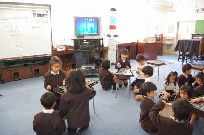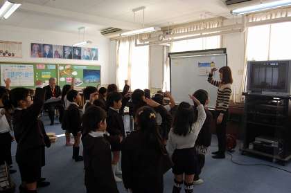 指導力向上のため、教員も互いに参観しました。音楽の授業で、星空の様子を打楽器などの合奏で表現する授業でした。難しい課題に子どもたちはよく頑張っていました。