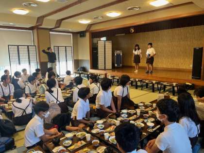朝食のあいさつでは、主食であるお米についてのクイズを出してくれました!