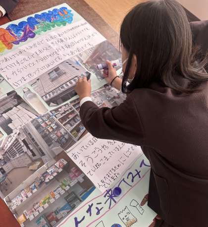 お店について分かったことや感想、写真などをまとめて壁新聞にしています!