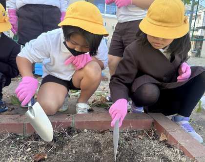 スコップで上にかぶさっている土を堀ります。