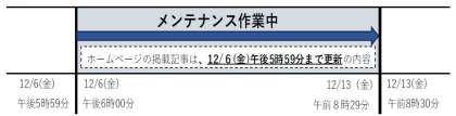12月6日(金)午後6時から12月13日(金)午前8時30分までの期間、学校ホームページのメンテナンスが行われます。