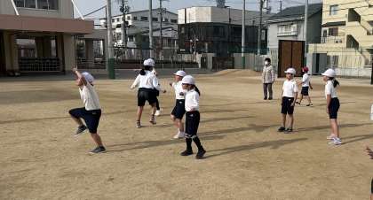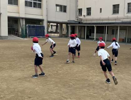 体育の時間に1組と2組合同でドッジボールをしました。