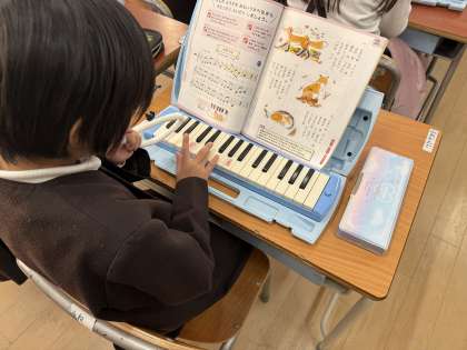 鍵盤ハーモニカの練習を一生懸命頑張っています。
