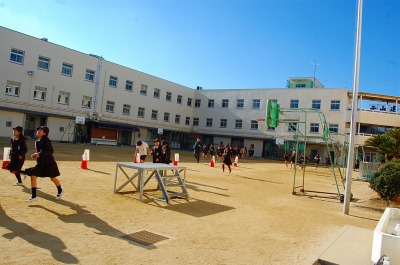 放送で地震の音が流れると、机の下に隠れて安全確保、揺れが収まるとすばやく運動場へ避難。避難の時の約束「お・は・し」をしっかりと守り、避難することができました。