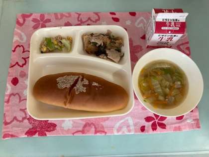 今日の献立は、豚肉のオイスターソース焼き、中華スープ、ツナとチンゲンサイのいためものです。