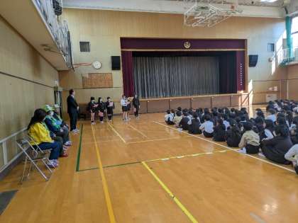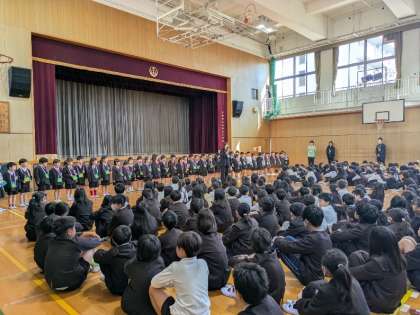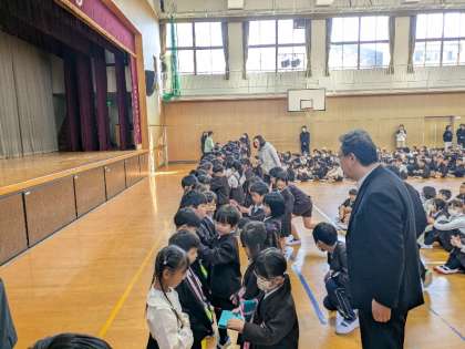 4月9日(水)、対面式では、いつも子どもたちの登下校の安全を見守っていただいている見守り隊の皆さまを紹介しました。2年生からは、あさがおの種をもらいました。