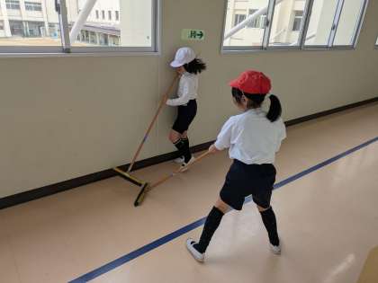 4月10日(木)、掃除の時間です。隅々まで綺麗にしてくれています。