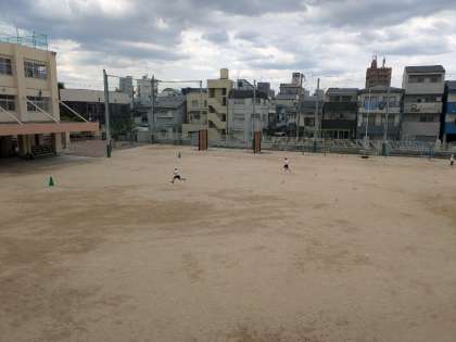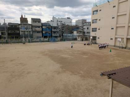 5月30日(金)、4年2組は体育科でミニハードルを使って走る練習をしていました。