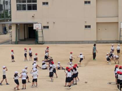 6月2日(月)、3年生は体育科でキックベースボールの練習をしていました。