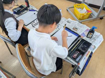 6月6日(金)、5年1組は国語科で習字に取組んでいました。