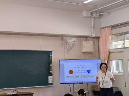 7月14日(月)、本校では今年、大阪市からの指定を受け1年生から3年生が「ことばの力」の研究を行なっています。アプリを使ってタブレットで朝の時間や隙間時間を活用し取り組む事ができます。本日は総合教育センターの指導主事先生が来られ取り組み方を説明していただきました。